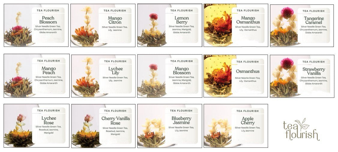 14 different flavors of blooming teaballs to choose from, in pack of 2, 3, 5 & 10! Our tea balls are individually wrapped for freshness.