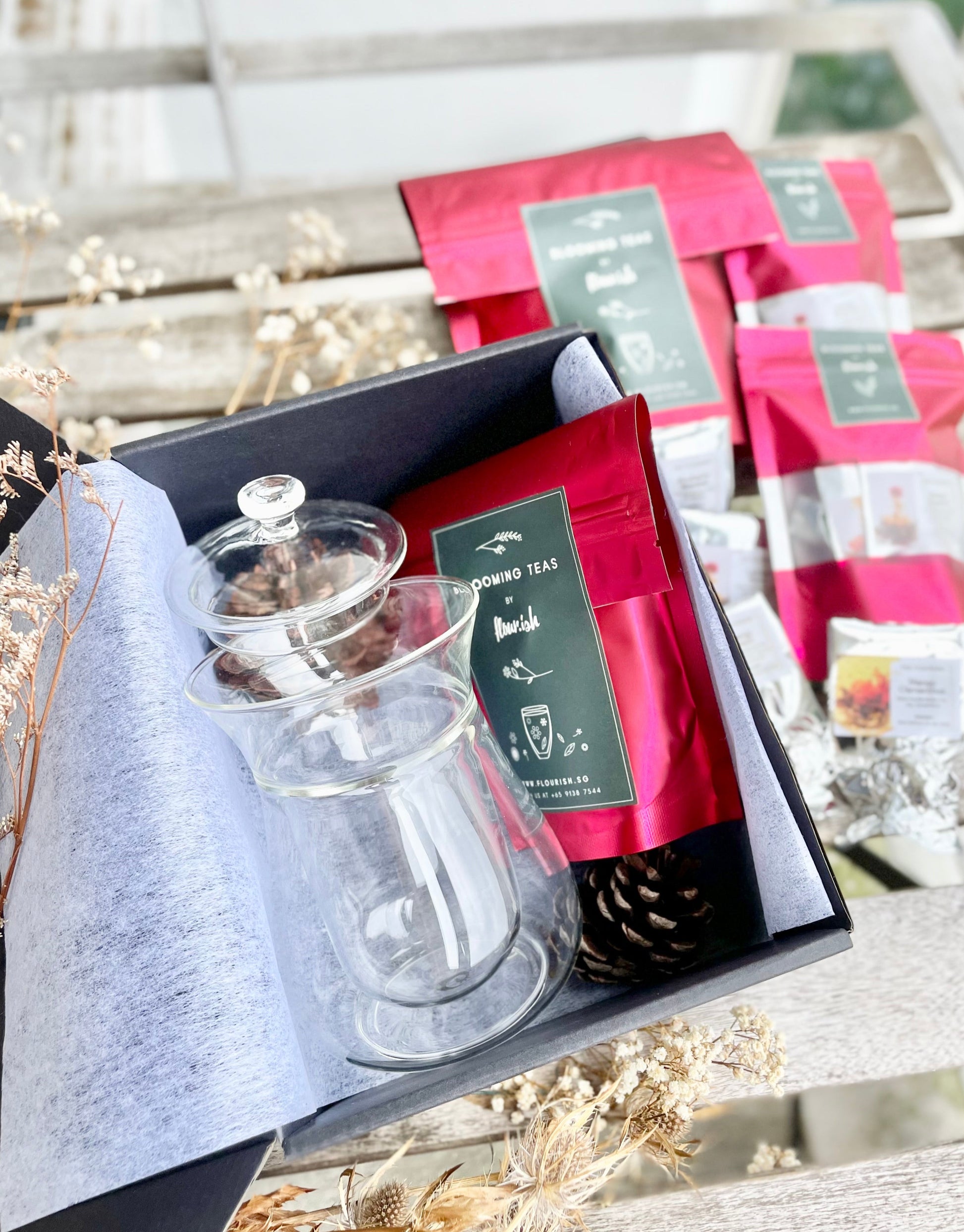 (Gift Box) 300ml Double Wall Serving Glass Cup with Lid w/ Teaballs Options