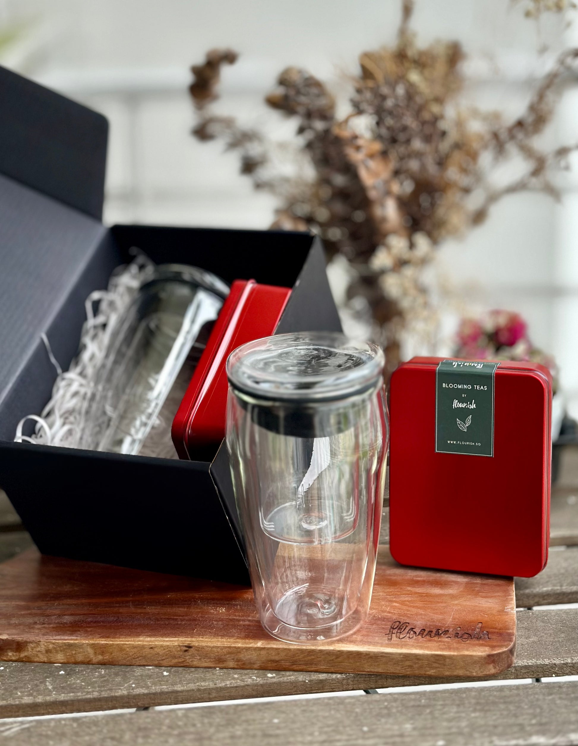 (Gift Box) 450ml Double Wall Insulated Glass Cup Set with Assorted Teaballs