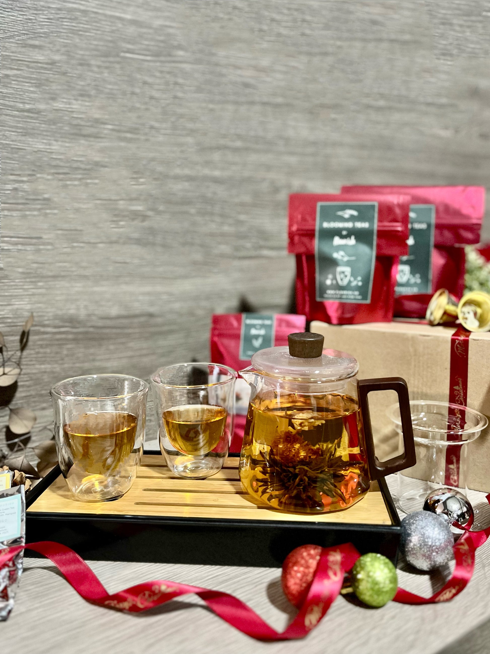For the enjoyment of our blooming teas, we recommend the use of clear or transparent glass cups, teapots or glass carafe.