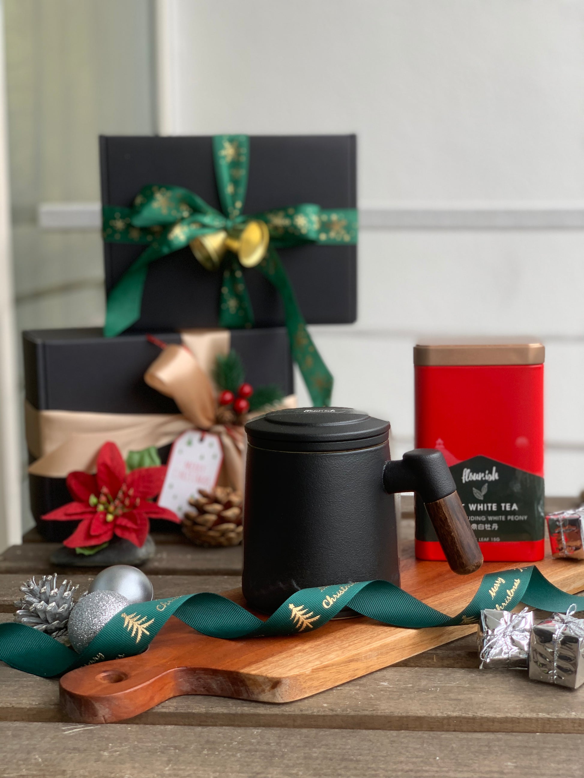 This matte black ceramic tea mug made a perfect gift with our tea collections!